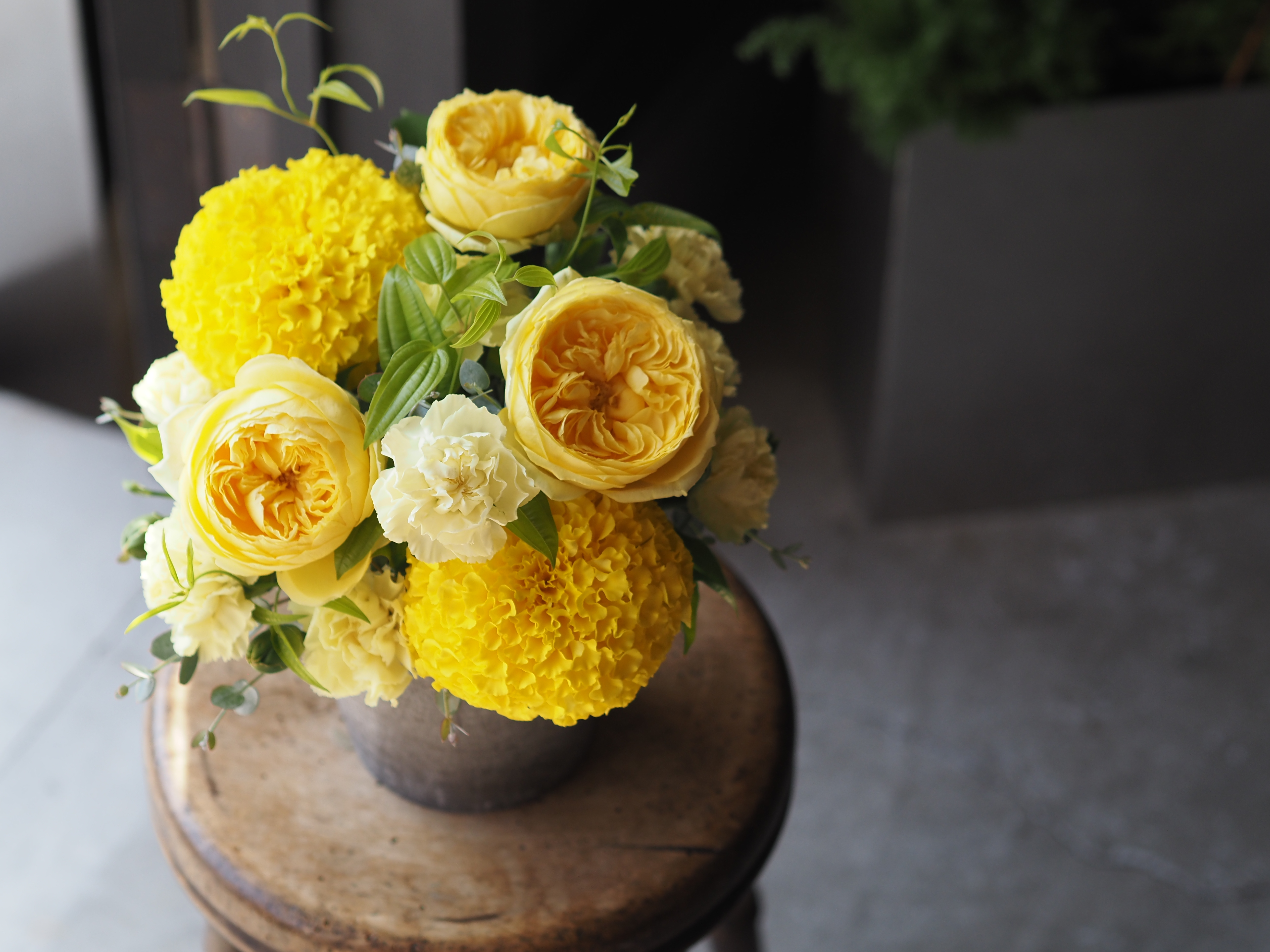 ※画像はサンプルです。イエロー系のお花と草花でまとめて作成します。